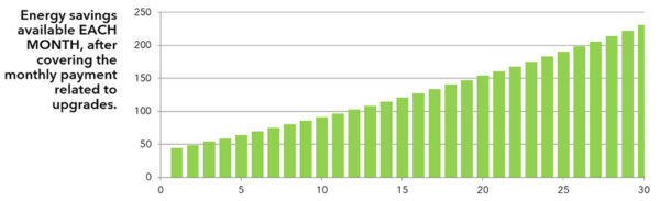 And the math only gets better as you project into the future. Even assuming a conservative escalation of energy rates of 2% annually [11], by year 30 the Passive House is saving $230 per month. If energy costs rise higher than 2%, the math only gets better. If the home achieves better than 60% improvement (and many of our homes do), the math only gets better. In the example above, if the home has a 65% energy reduction and energy costs rise 4%, homeowners save $64/mo on Day 1 and over $600/mo by year 30.