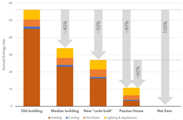 Most people who are interested in Passive House come to it for its exceptional energy efficiency: a Passive House typically uses 60-80% less energy than a conventional new home—and that’s before adding solar panels, which can easily bring it to Net Zero or beyond.