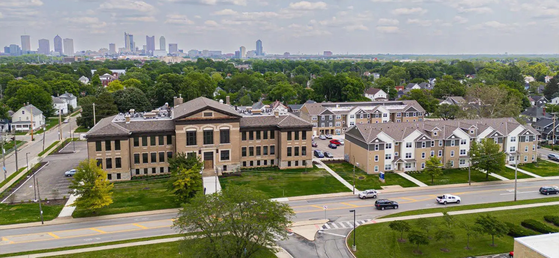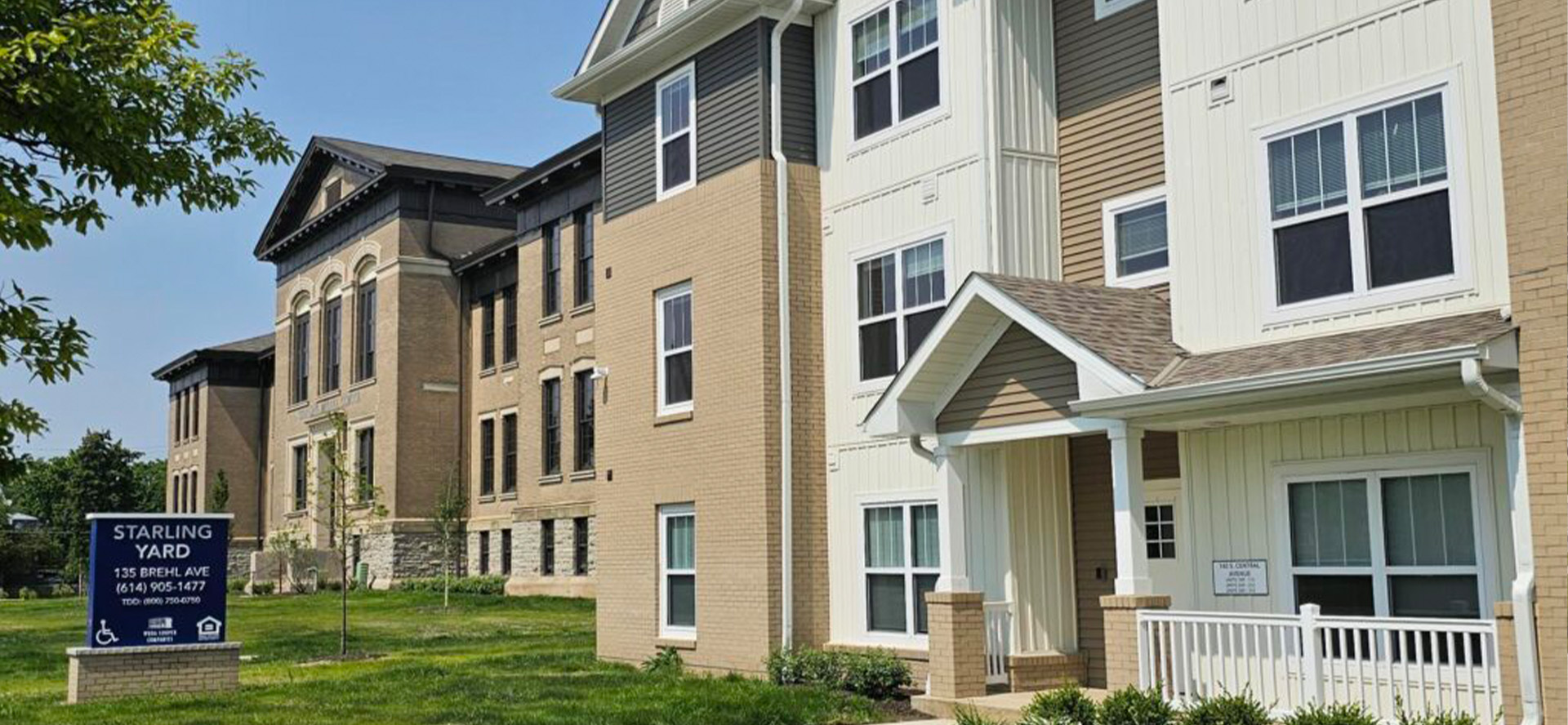 Starling Yard is an affordable retrofit and new construction project with three 3–4 story buildings and 97 units situated in Columbus, Ohio. The work includes the adaptive reuse of a long-vacant 1908 (1919?) school, Starling Middle School, paired with two new buildings.